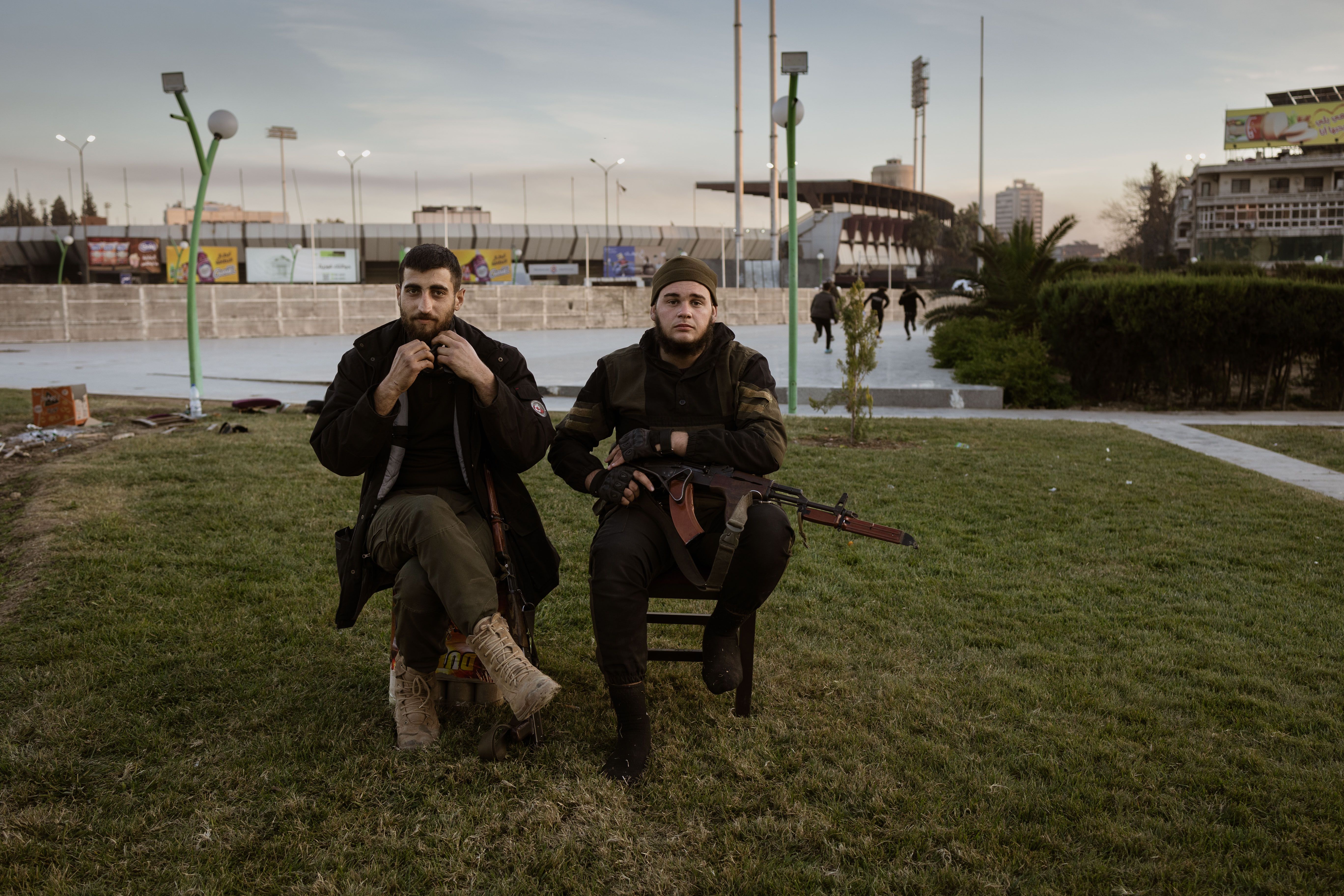 Nå sitter han vakt med andre islamist-krigere i Damaskus.
