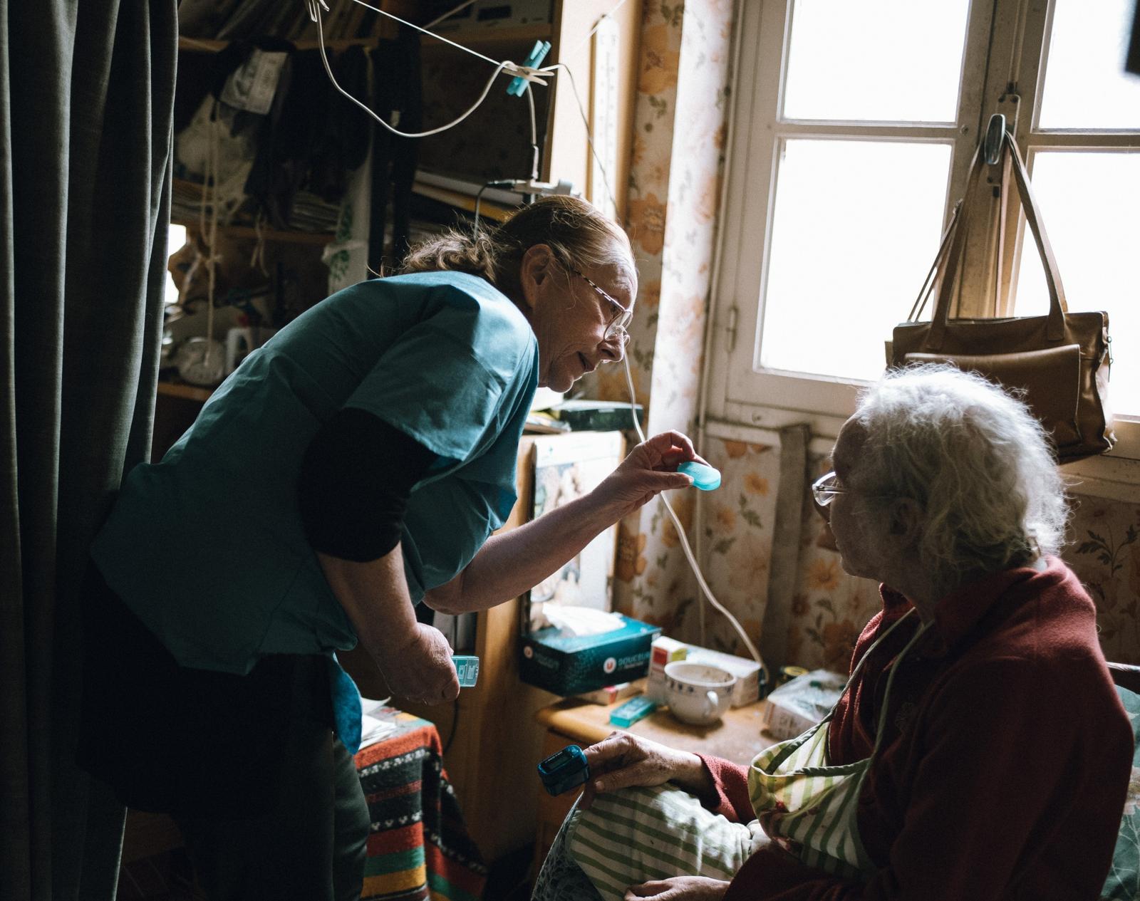 Martine Giordanino (61) åpner bagasjerommet på sin lille Citroën. Klokka er sju, det er fortsatt mørkt. I lyset fra Marseilles gatelykter finner hun fram det hun trenger fra «mitt lille sykehus». Medisiner, bandasjer og sprøyter ligger i bagasjerommet. Hjemmesykepleieren har allerede vært hos tre av sine femten daglige pasienter. Nå er hun på vei inn i nok en boligblokk.