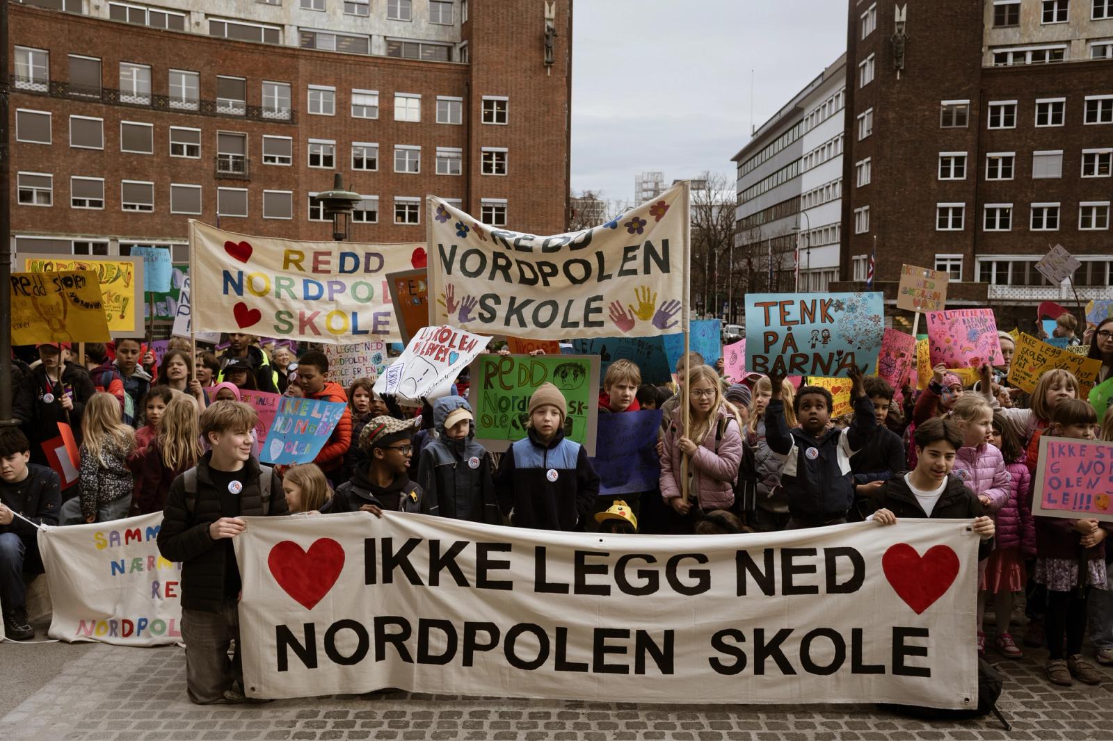 TENK PÅ BARNA: Demonstrasjon mot nedlegging av Nordpolen skole. FOTO: Christopher OlssønTENK PÅ BARNA: Demonstrasjon mot nedlegging av Nordpolen skole. FOTO: Christopher Olssøn
