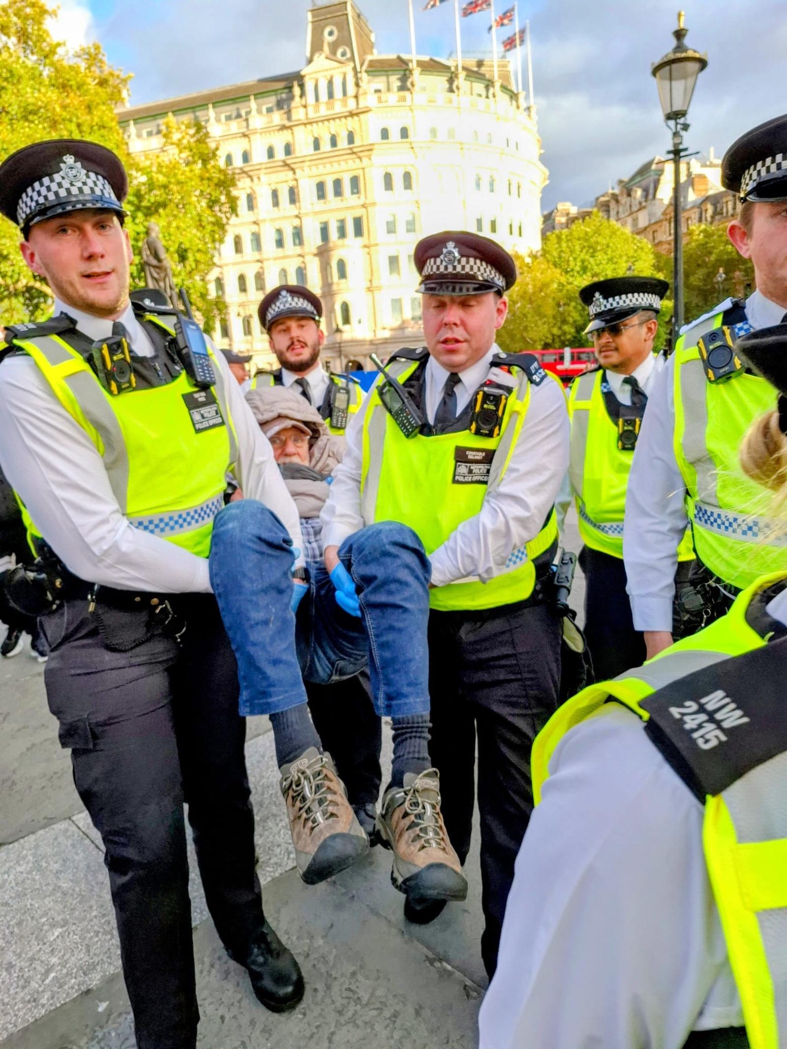 Hundrevis av mennesker trosset i helga oppfordringen fra den britiske regjeringen om å holde seg hjemme – og gikk i stedet ut for å demonstrere til støtte for aksjonsgruppa Palestine Action på Trafalgar Square i London.