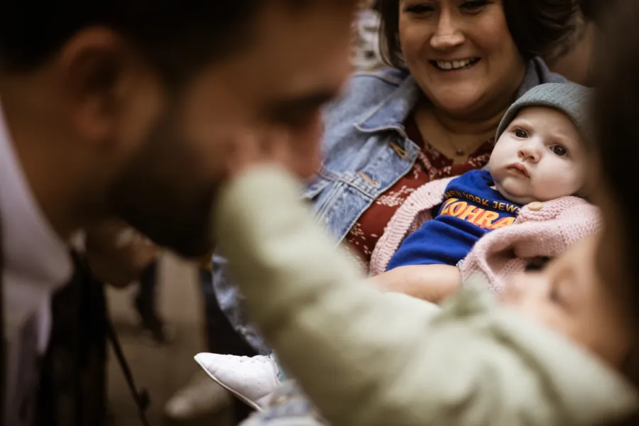 En av babyene lager en utålmodig lyd. Mamdani smiler bare enda breiere.