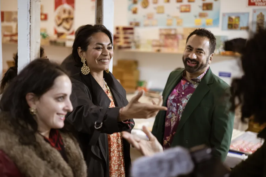 Samme kveld vi finner vi veien til Maharaja Sweets, en liten kake- og søtsakbutikk i arbeiderklassenabolaget Jackson Heights i Queens. Det er hindu-høytida divali, og midt i et salig kaos står Mamdani og deler ut hvite papptallerkener med små, søte kaker til en lang av kø av ivrige tilhengere. De fleste har bakgrunn fra Sørøst-Asia og land som India, Bangladesh og Pakistan.