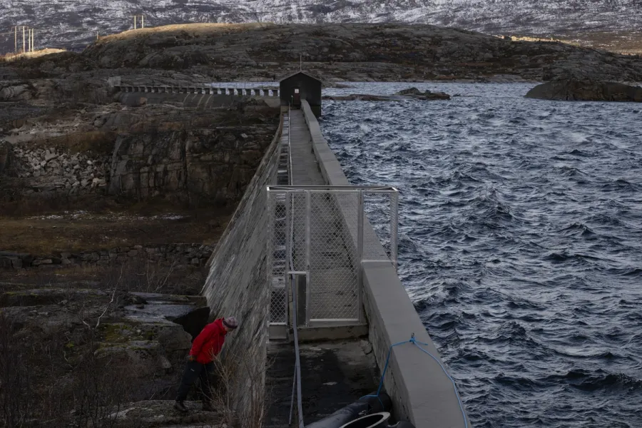 Innsjøen er demmet opp av en massiv bue av betong. Herfra føres vannet ned til tre andre magasiner, før det fosser ned i et av kommunens tjue kraftverk.