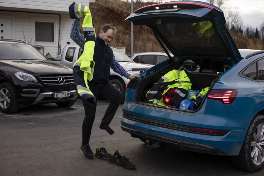– Dette er kjempekult, sier Torkjell Lund idet han svinger bilen opp på byggeplassen i Kvandal.