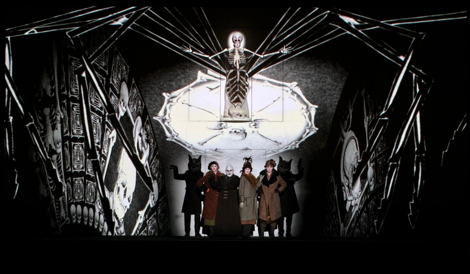 Før «Tryllefløyten» starter, vises et sceneteppe laget av rød velur, som på kino, og når det trekkes fra ser vi et lerret som snart skal utnyttes til maksimal effekt. For den visuelle variasjonen er stor, selv uten faktiske gjenstander og selv om nesten hele scenografien utspiller seg på filmlerretet, i en operaforestilling utviklet av teaterkompaniet 1927 (Suzanne Andrade, Paul Barritt) og regissør Barrie Kosky.