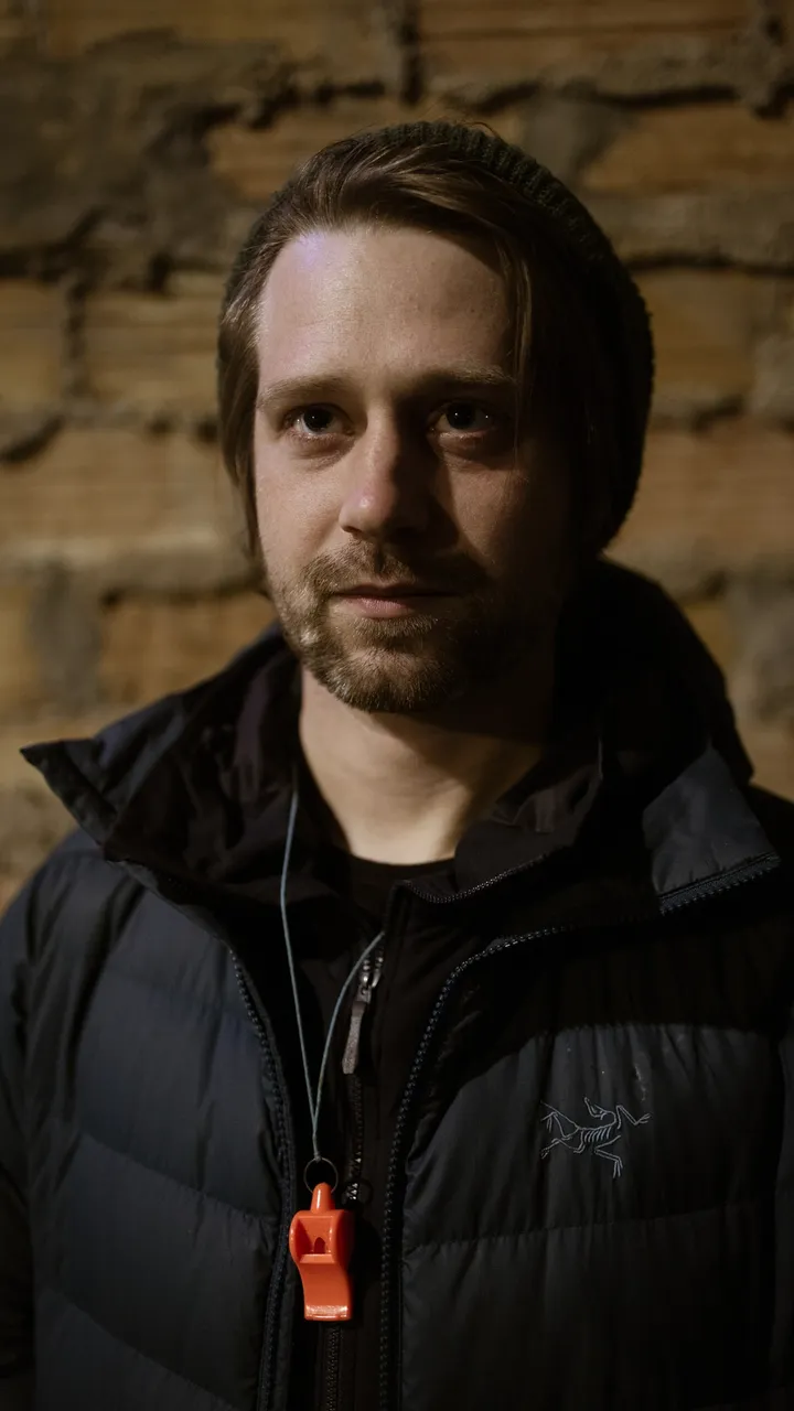 Lee Stedman er utslitt, han sier det har vært «nok en vill dag». Den skjeggete 30-åringen er kledd i boblejakke og lue, og har en rød fløyte rundt halsen.