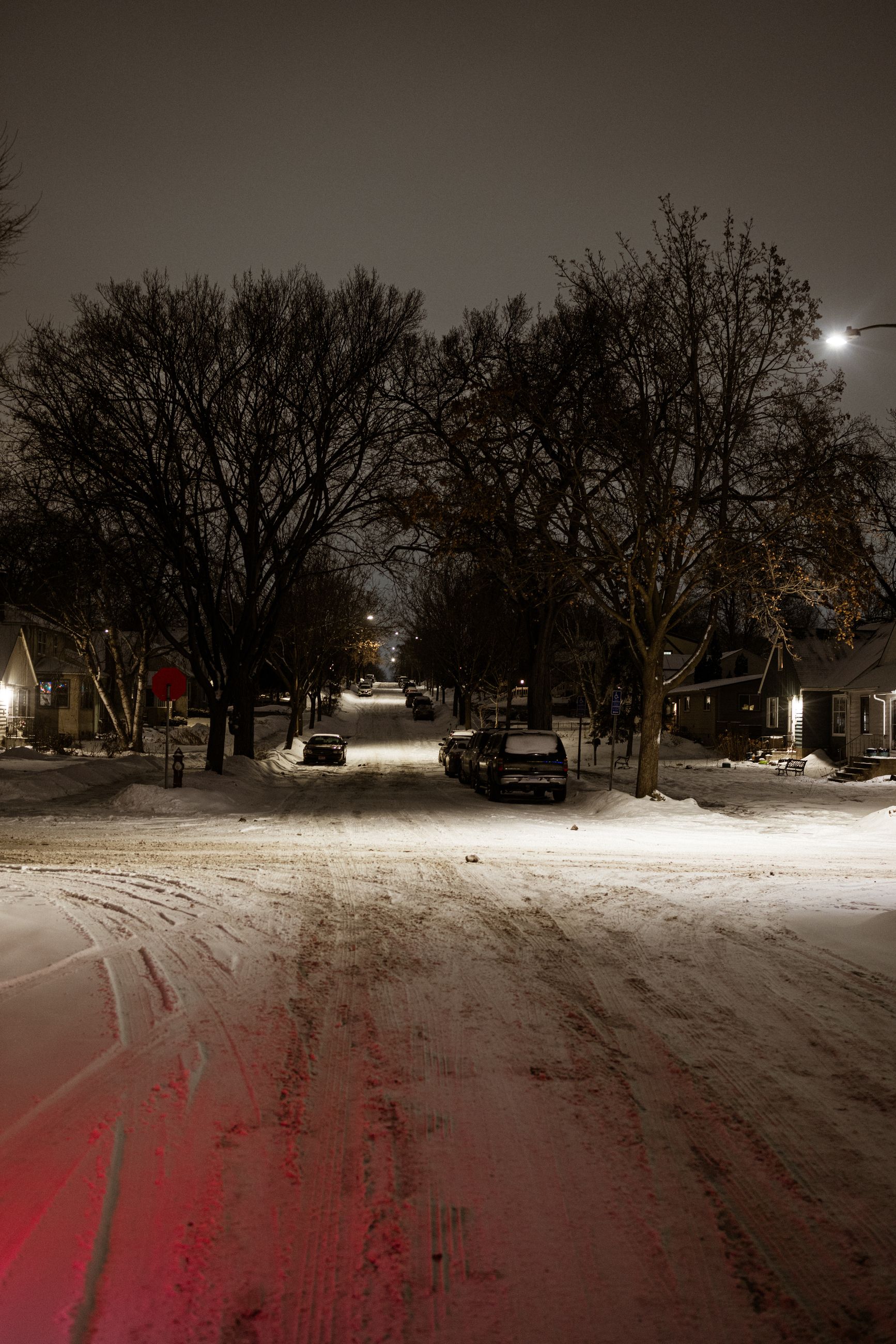 Hun går under navnet Bruja Roja, spansk for «Den røde heksa». Mens hun blåser røyk fra en e-sigarett ut i lufta, følger hun lyden fra samtaler mellom patruljer som snakker sammen via den krypterte meldingstjenesten Signal. Hun forteller at hun har patruljert disse nabolagene i flere uker nå. Det er det minste hun kan gjøre for å hjelpe alle dem som sitter hjemme i frykt for Ice, sier hun. Det er det minste hun kan gjøre for å yte motstand mot Trumps dødelige okkupasjon av Minnesota.