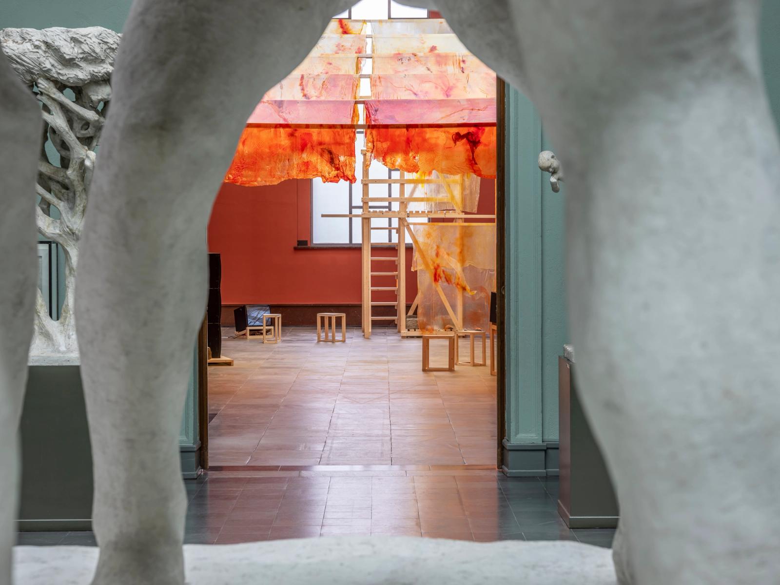 For snart ti år siden fikk kunstner Apichaya Wanthiang mye oppmerksomhet for sine malerier av tropiske strøk og skoger, med abstrakte innslag og fordreide perspektiver. Hun installerte gjerne maleriene sine i små ganger og rom laget av stillaser i tre, med vegger av grønne tekstiler. Disse scenografiske miljøene videreutviklet Wanthiang i en utstilling på Munchmuseet i 2022, der hun presenterte små skulpturer strukket med agar – et gelatinprodukt tilvirket i samspill med spesielle alger, som minner om tynn hud. Wanthiang hadde farget dem i oransje, dype blå og sjøgrønne farger, slik at det mørke galleriet lignet en undersjøisk grotte.