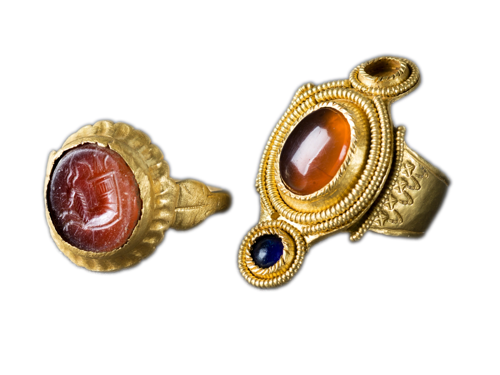 I 2018 ble det gjort et usedvanlig funn med metalldetektor i Tysvær i Rogaland: En fingerring av gull med et innfattet «gemme» av karneol. Den røde karneolsteinen har inngravert et drikkehorn, en rhyton, hvis ende er utformet som forparten av en villgeit. Motivet er eldgammelt og har aner fra Midtøsten, mens karneolgemmet – og gullringen – er romersk. Funnet føyer seg inn i en nokså eksklusiv gruppe av karneolprydete gjenstander som kom til våre trakter for 1500–2000 år siden.