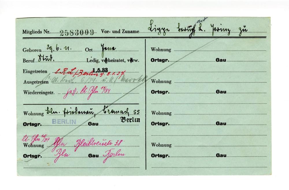 Hans Huber, som var direktør i en papirfabrikk i München, motsatte seg nemlig like før krigens slutt ordren fra partiet om å kvitte seg med kortene og fikk gjemt dem unna. Dermed ble rundt 80 prosent av medlemskortene bevart.