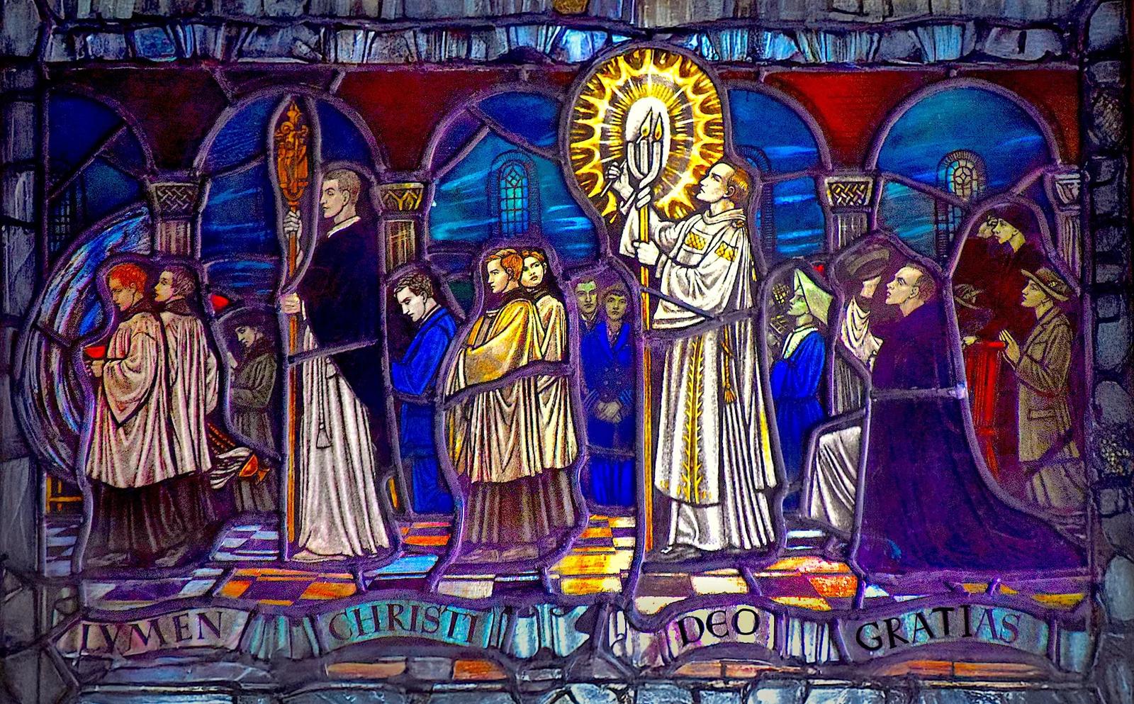 På påskenatt ligger verden i mørke. Det tennes et lite bål utenfor kirken. Det blir lys, og ilden bæres med det store påskelyset inn i den mørklagte kirken. Lyset sprer seg utover. Det er Den hellige natten, slik det synges i påskelovsangen fra 300-tallet som fortsatt brukes.