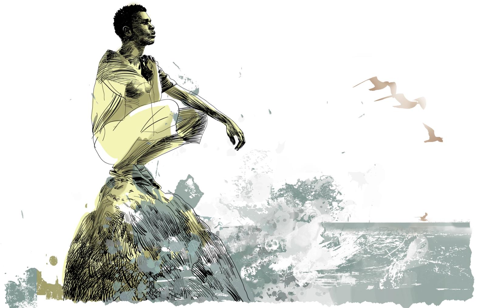 Etter nesten to år på aventure har K endelig kommet fram til Lampedusa. Reisen har vært tøff. Opplevelsene underveis har vært ekstreme – varme, sult og frykt. Mye frykt. Bussturen gjennom Nigeria gikk greit. Båtturen gjennom elvedeltaet mot Tsjad-sjøen var spennende. Han vil ikke snakke om opplevelsene på turen gjennom Niger. På grensen til Libya ble han frastjålet nesten alt han eide. I Marokko livnærte han seg med småjobber og sparte opp til overfarten, men en han bodde sammen med, forsvant en dag med alle pengene.