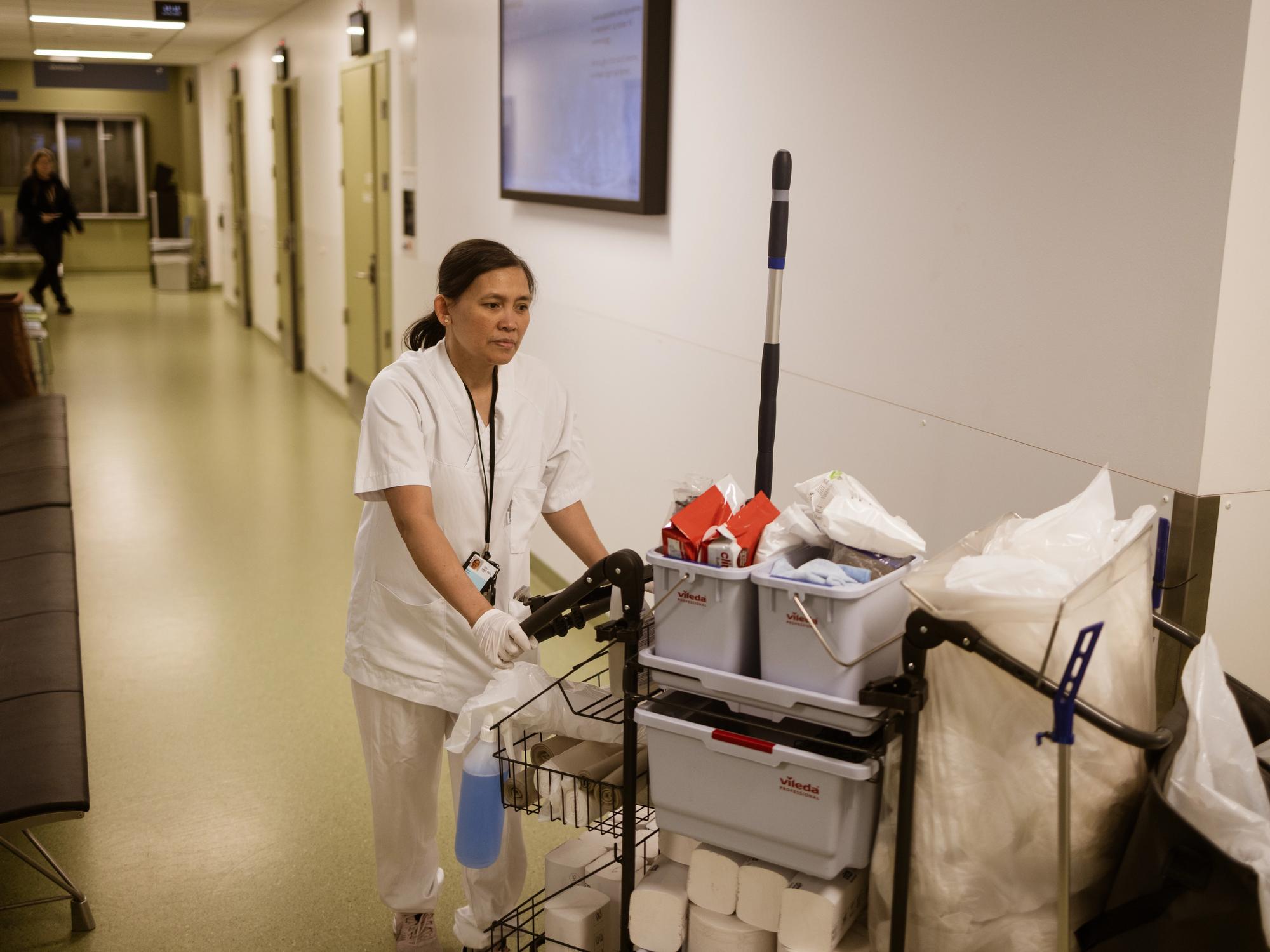 Karen Gabumpa Alegre har reingjort på Oslo legevakt i ni år. Nå foreslår byrådets effektiviseringsprogram at Legevakta skal kvitte seg med egne reinholdere og vektere.