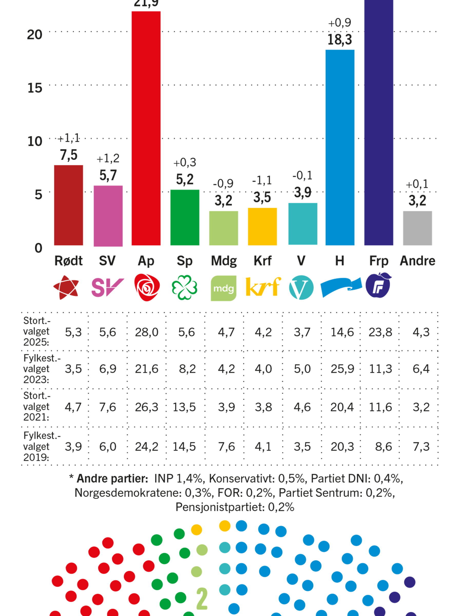 Frp og Høyre har flertall aleine på Klassekampen og Nationens aprilmåling.