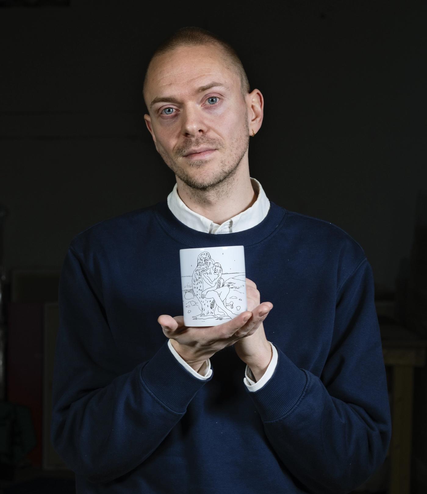 Motivet på koppen har oppstått ut fra et tall og et tema Nikolai Torgersen ikke klarer å slippe, antall mennesker som dør av sult i verden hvert år.