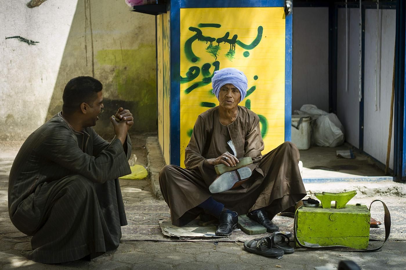 Sisa Abu Daooh al-Nimr (66) sitter foran kiosken som en veldedighetsorganisasjon bygde til henne for et par år tilbake. Hun sitter med beina i kors, kledd i en tradisjonell jellabiya, som er så typisk for sør-egyptiske menn. På hodet har hun en turban.