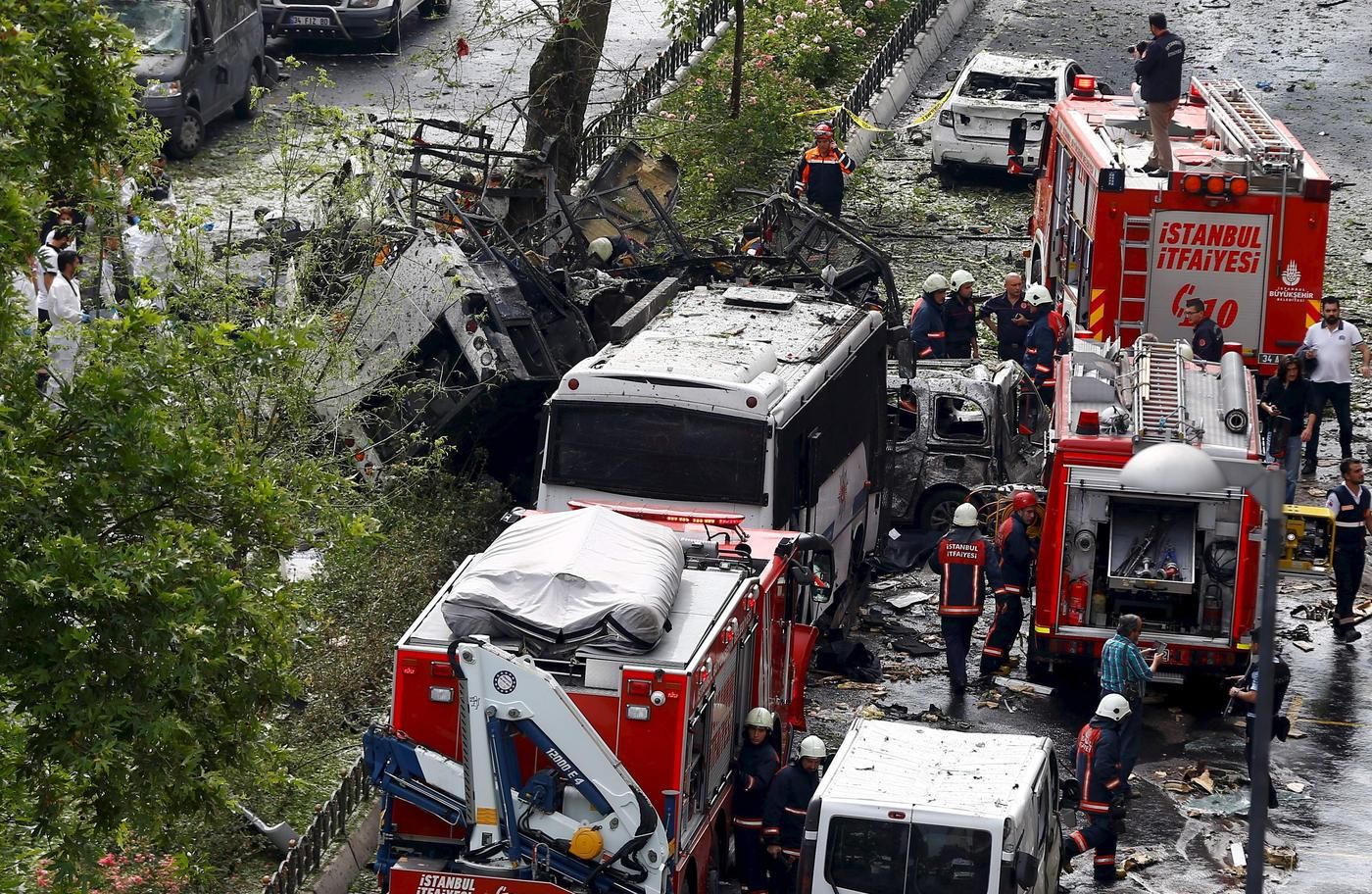 En fjernstyrt bombe ble utløst idet en buss med opprørspoliti passerte nær Istanbul-universitetet på den europeiske sida av Bosporos-stredet i morgenrushet i går.