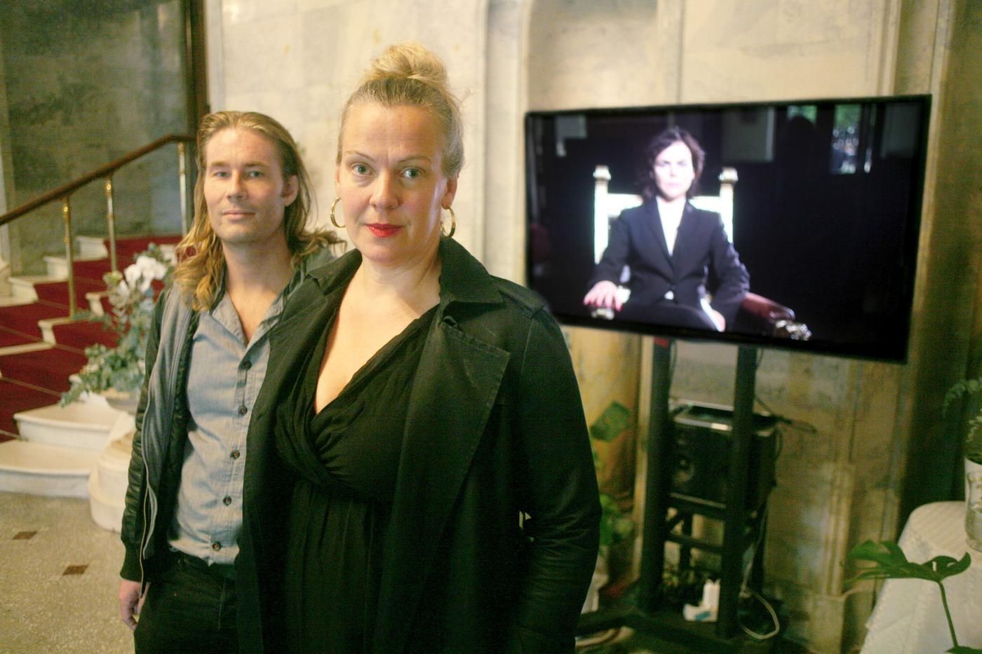 NAzi-stempel: Kunstnerne Pia Maria Roll og Marius von der Fehr står bak videokunsten som israelske myndigheter sammenlikner med nazi-propaganda. Videoen ble i går vist på Nationaltheatret, som en del av Ibsen-festivalen.