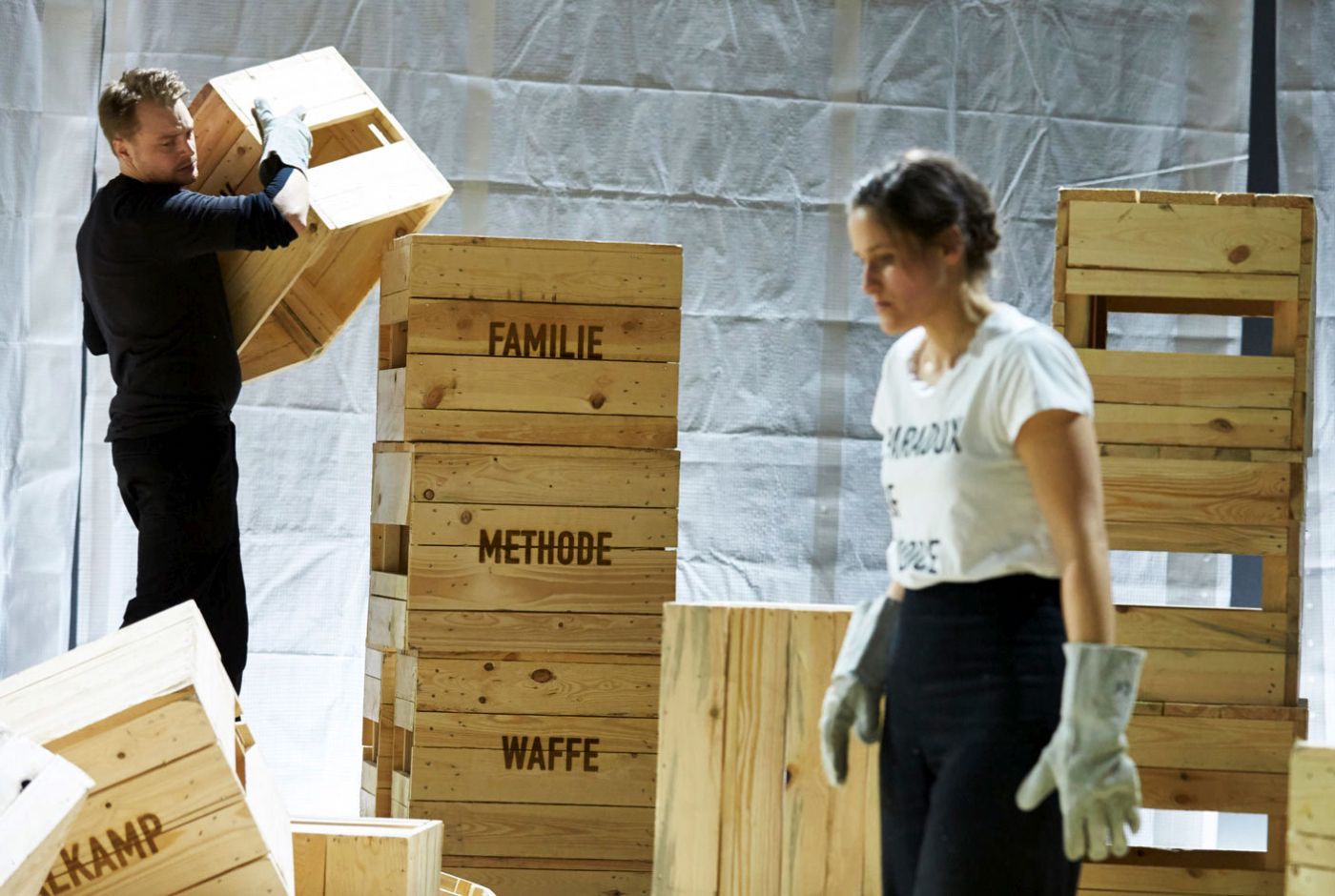 STRØM: «Jevnt over er stykket svært godt gjennomtenkt. Man må ha tvilt seg fram til vanskelige beslutninger, og over en skjerm høyt oppe glir det spørsmål i en stadig strøm. ‘Skal vi nevne navnet hans?’, ‘Skal vi la være?», skrev Karl Kristian Bekeng om «Ein av oss/Einer von uns – Tilnærmingsforsøk etter 22. juli» på Det Norske Teatret.