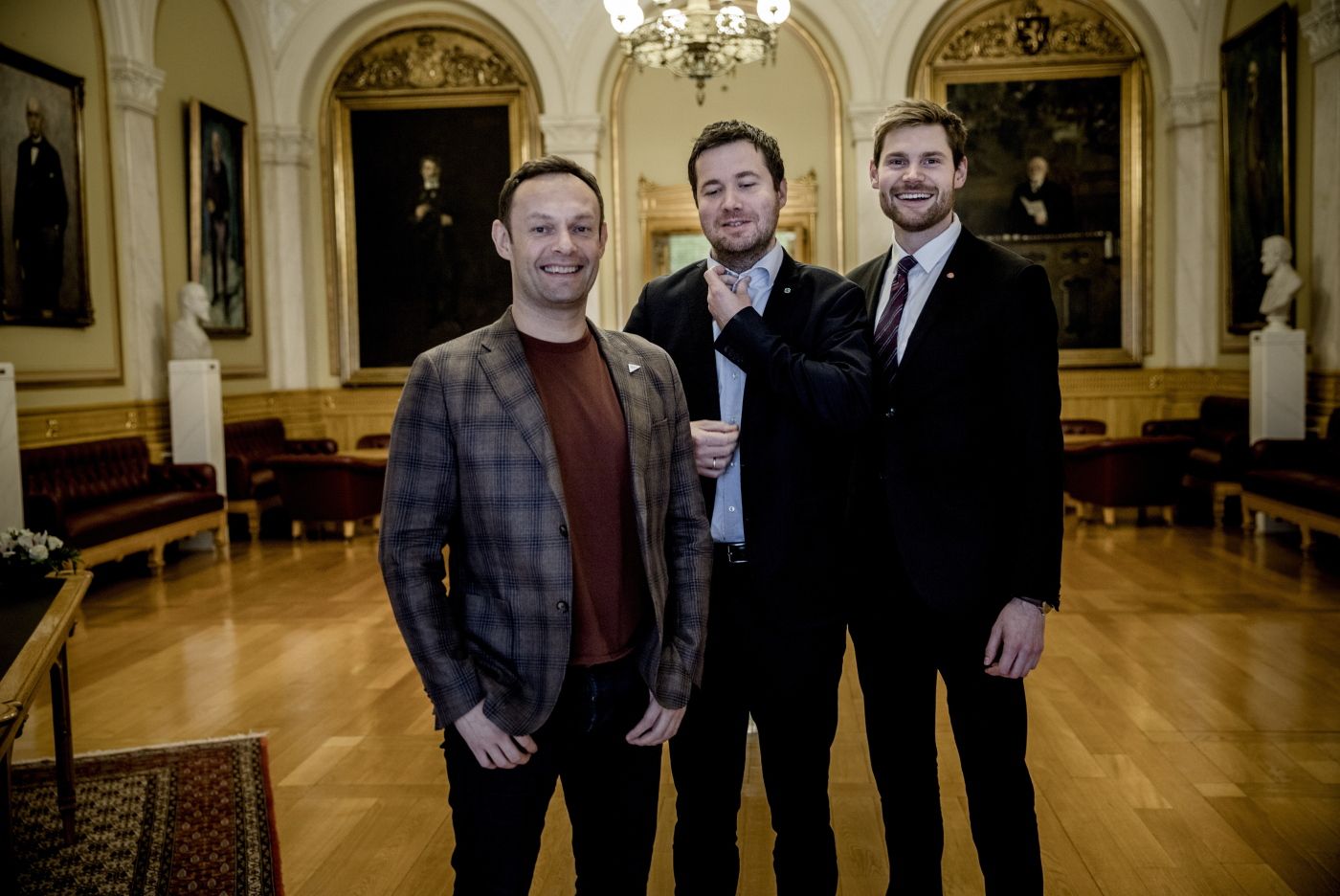 ALLIERTE: SV, Sp og Ap legg no fram ein felles plan for at Noreg skal laga halvparten av maten sin sjølv. – Når vi får eit nytt fleirtal i Noreg, får vi ei ny satsing på jordbruket, seier Sps Geir Pollestad, her med SVs Torgeir Knag Fylkesnes og Kristen Sandtrøen i Ap.