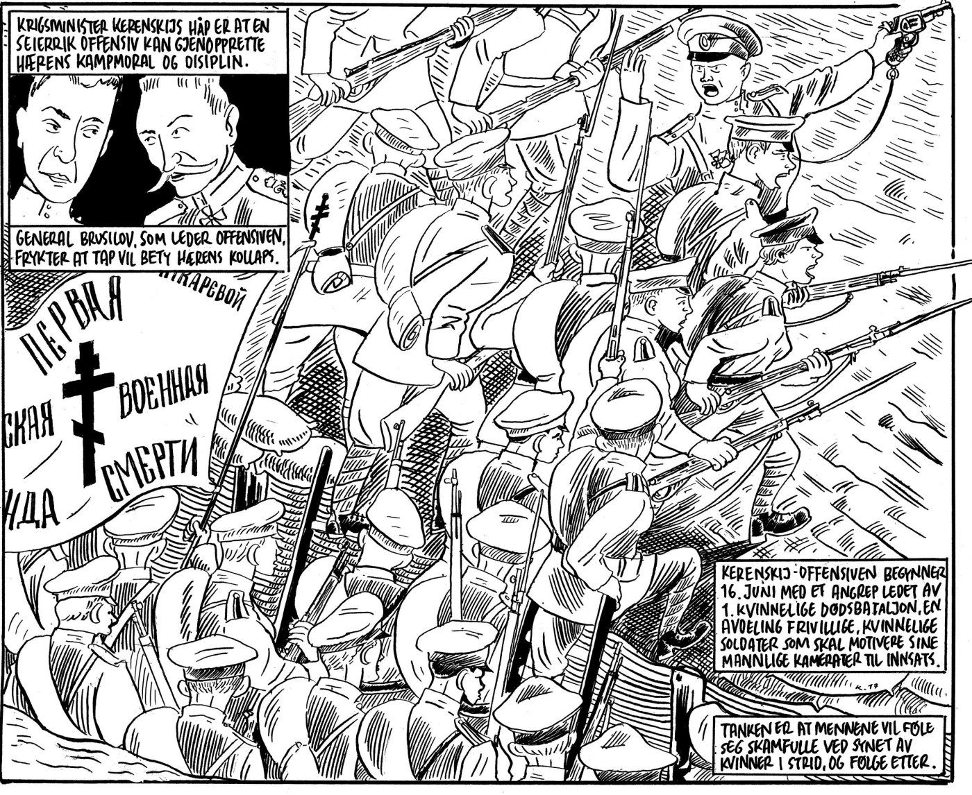 Den 25. juni 1917 står 300 soldater oppstilt under den gylne kuppelen på Isak-katedralen i det krigstrøtte Petrograd. Under de grå uniformsluene røper de unge kvinneansiktene høystemt forventning. Etter tre måneder med nådeløs seleksjon er det disse soldatene som nå danner Den første kvinnelige dødsbataljon – den første kvinnelige stridsenheten i moderne historie.