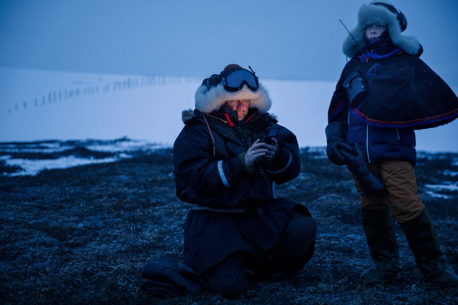 Mattis Danielsen skrur av motoren på den gule snøscooteren. Han har fått øye på noe. De andre i følget forsvinner over den snøkledde vidda. Ingen får med seg at han har stoppet. Han løfter øreklokkene av hodet. Det er stille. Bare duren fra de andre som gradvis beveger seg lenger vek, kan høres. Han går noen skritt foran scooteren og trekker mobiltelefonen opp av jakkelomma.