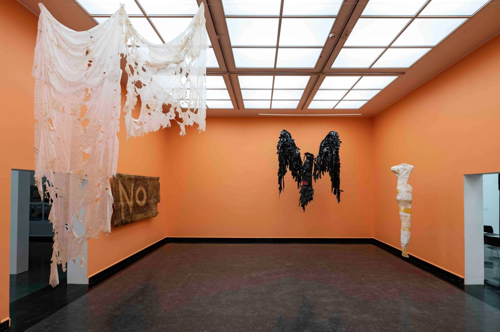 «Kunsthistorikere, kritikere og anmeldere og ikke minst innkjøpskomiteer. Gjør jobben deres!» Elisabeth Haarr (76) advarer sånne som meg – setningene står å lese i et av flere personlige notater hun har inkludert i årets festspillutstilling, og er plassert like ved bøker av Mao og James Baldwin. Uttrykket «finne frem blondene» er notert like under. Det er da også nærliggende å tro at Haarr særlig sikter til den begrensede oppmerksomheten tekstilverk har fått i den «høye» kunstinstitusjonen.