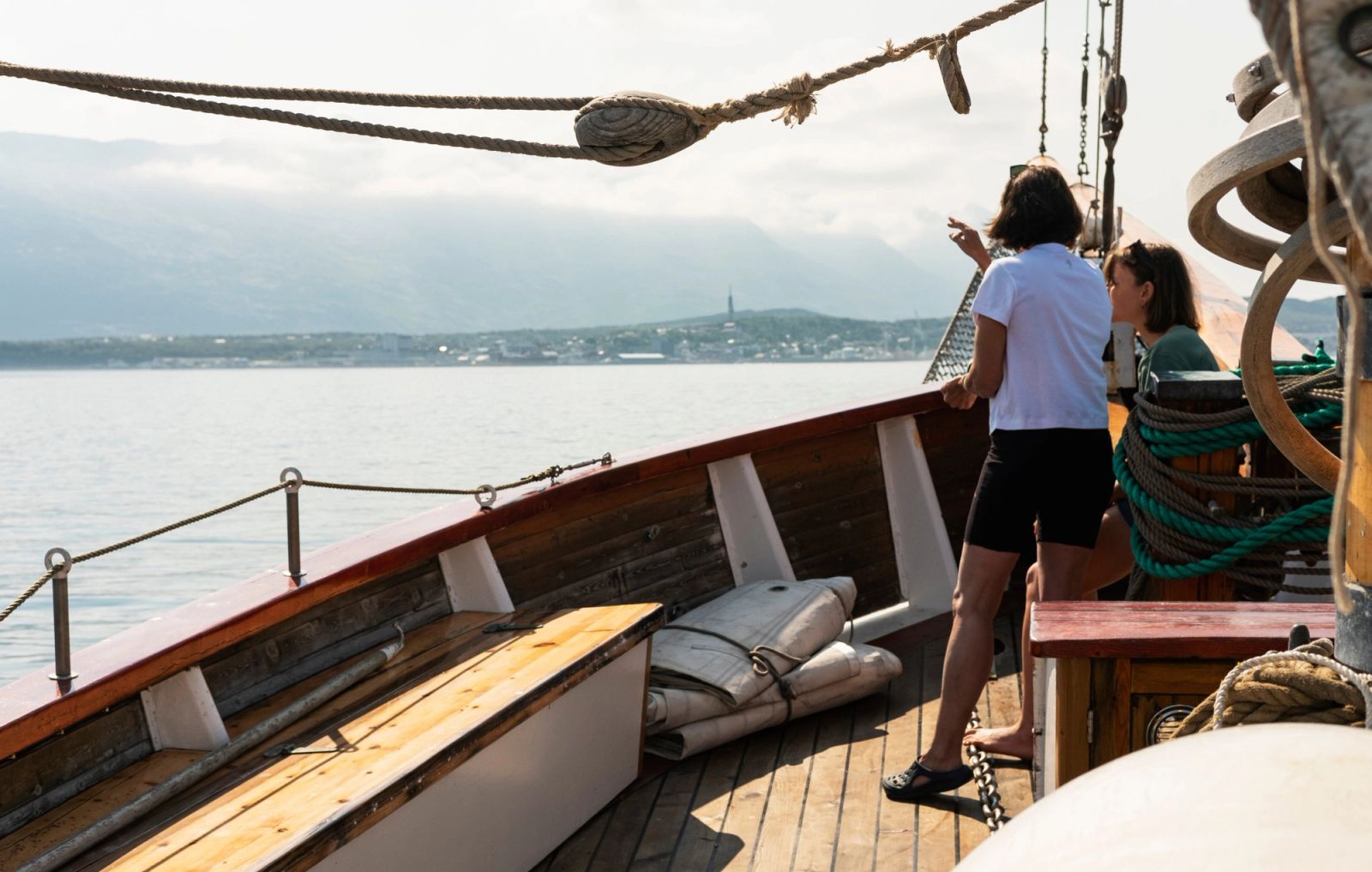 Eg har blitt fortalt at her i Nord-Noreg kallar dei det sommar om det er meir enn ti varmegrader. No syner gradestokken rundt 25 grader langs Helgelandskysten, og det er ganske triveleg å sitje på dekk på den staselege «Goxsheim» og nyte eit glas med eplejus.