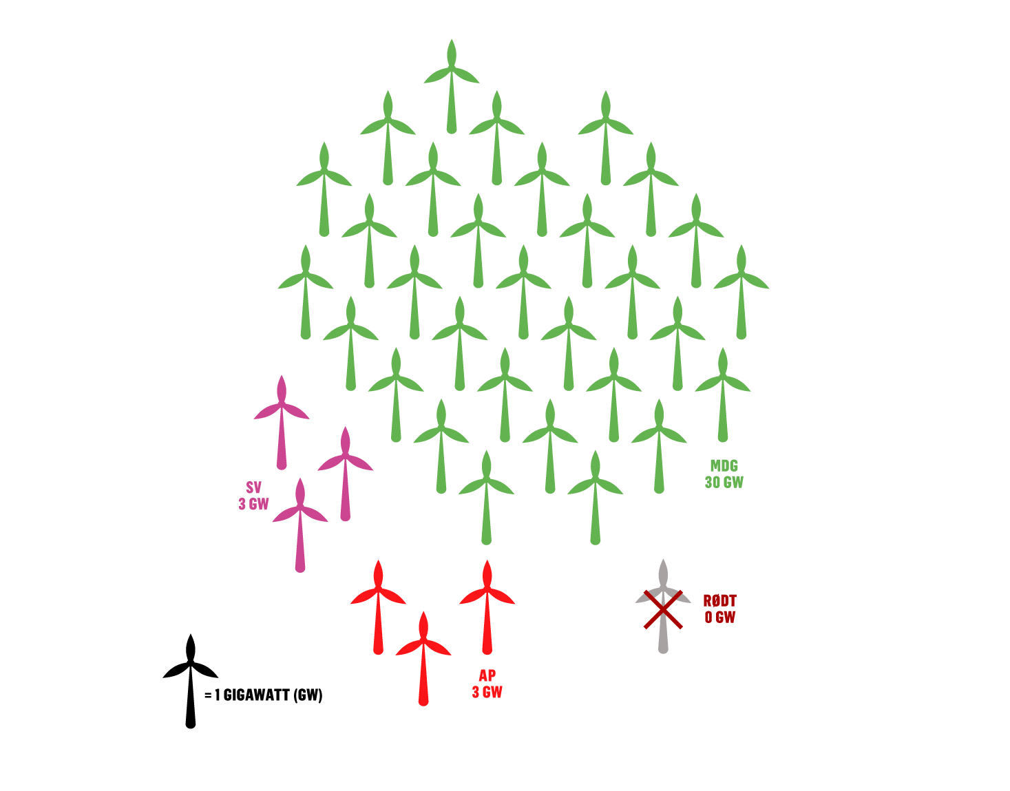 Fra null til 30 gigawatt: Det spriker enormt mellom havvindsatsingene til de store partiene: