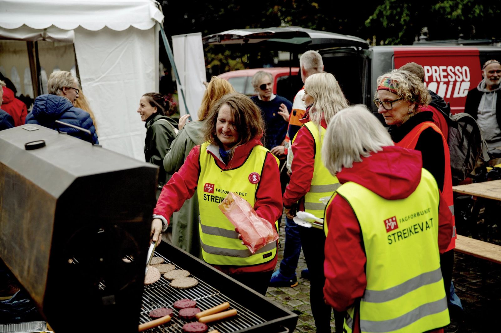 Med strikkesalong, grillmat og åpen mikrofon i et partytelt utenfor Nationaltheatret skal kulturarbeiderne komme seg gjennom streiken.