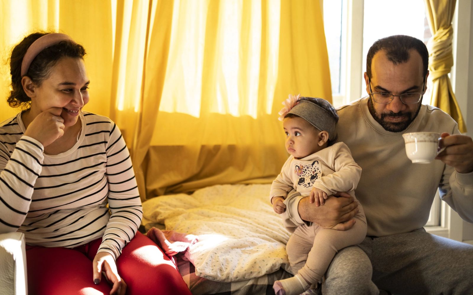 Lille Sophia Jouda er snart fem måneder gammel. Hun følger våkent med på hva mamma Nadia Fartes og pappa Nidal Said Jouda snakker om mens hun lager godlynte pludrelyder og stapper fingrene i munnen.