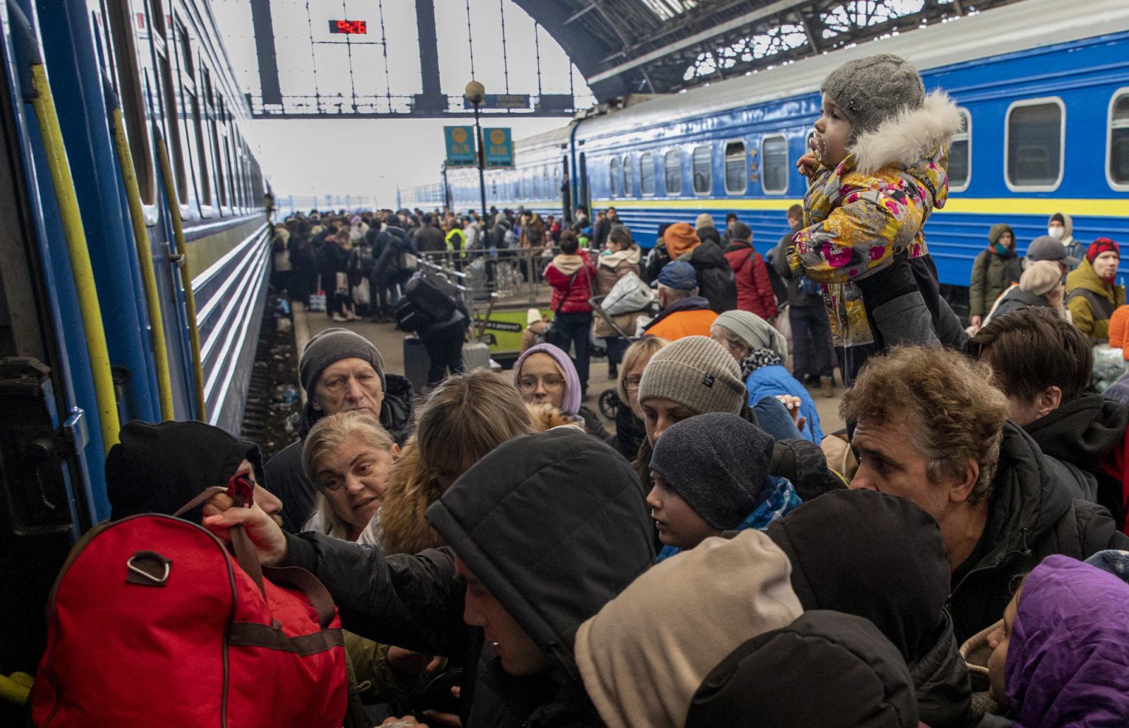 På togstasjonen i Lviv kjemper folk fra hele Ukraina om plass på togene bort fra krigen: