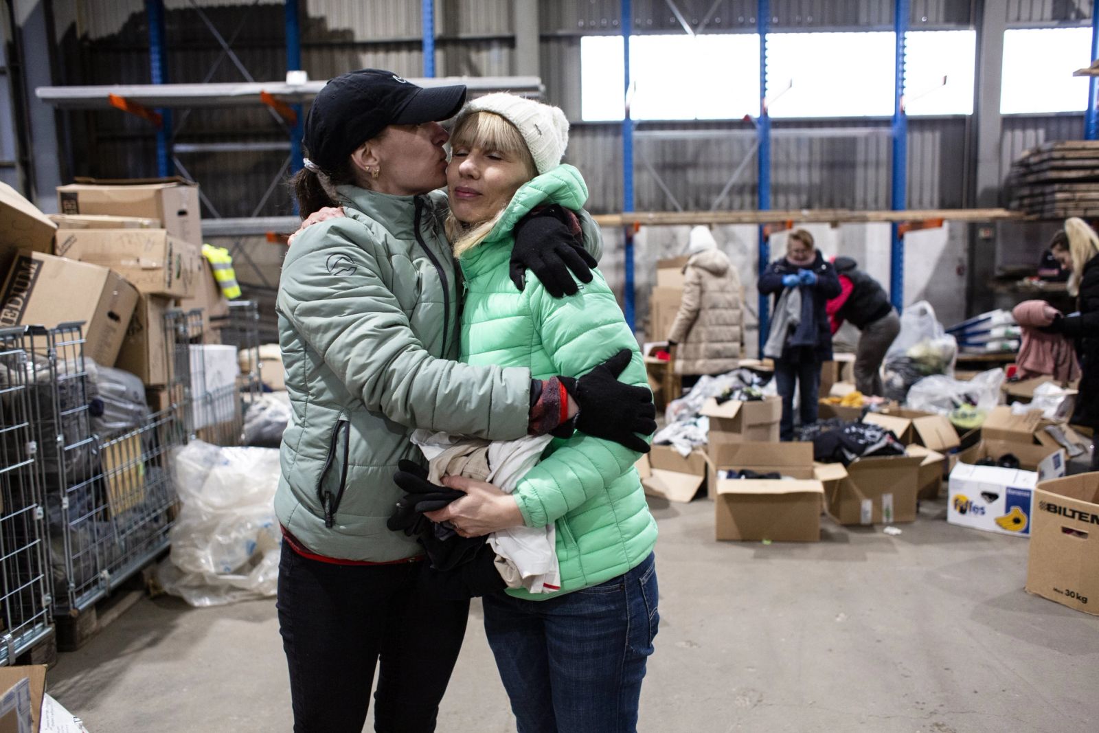 I en kald industrihall bak krigsbunkeren Dora i Trondheim jobber ukrainere med å pakke donasjoner. Noen av kvinnene er nylig ankommet fra flukt, de andre frivillige bor i Trondheim. De snakker lavmælt og sorterer. Varme ullsokker og fleece, mat, bleier og plaster. Alt pakkes på paller som skal sendes til Ukraina.