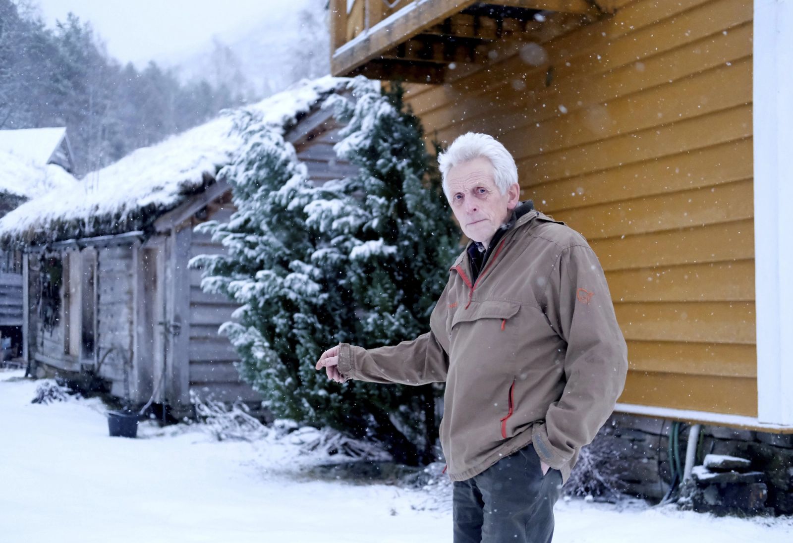 Heilt uventa har det plutseleg lagt seg fem centimeter med snø på den bratte og luftige grusvegen opp til fjellgarden Flugedal i Førde. Det ser grådig bratt ut utforbi vegkanten – og rett ned i elva som går mange meter nedanfor.
