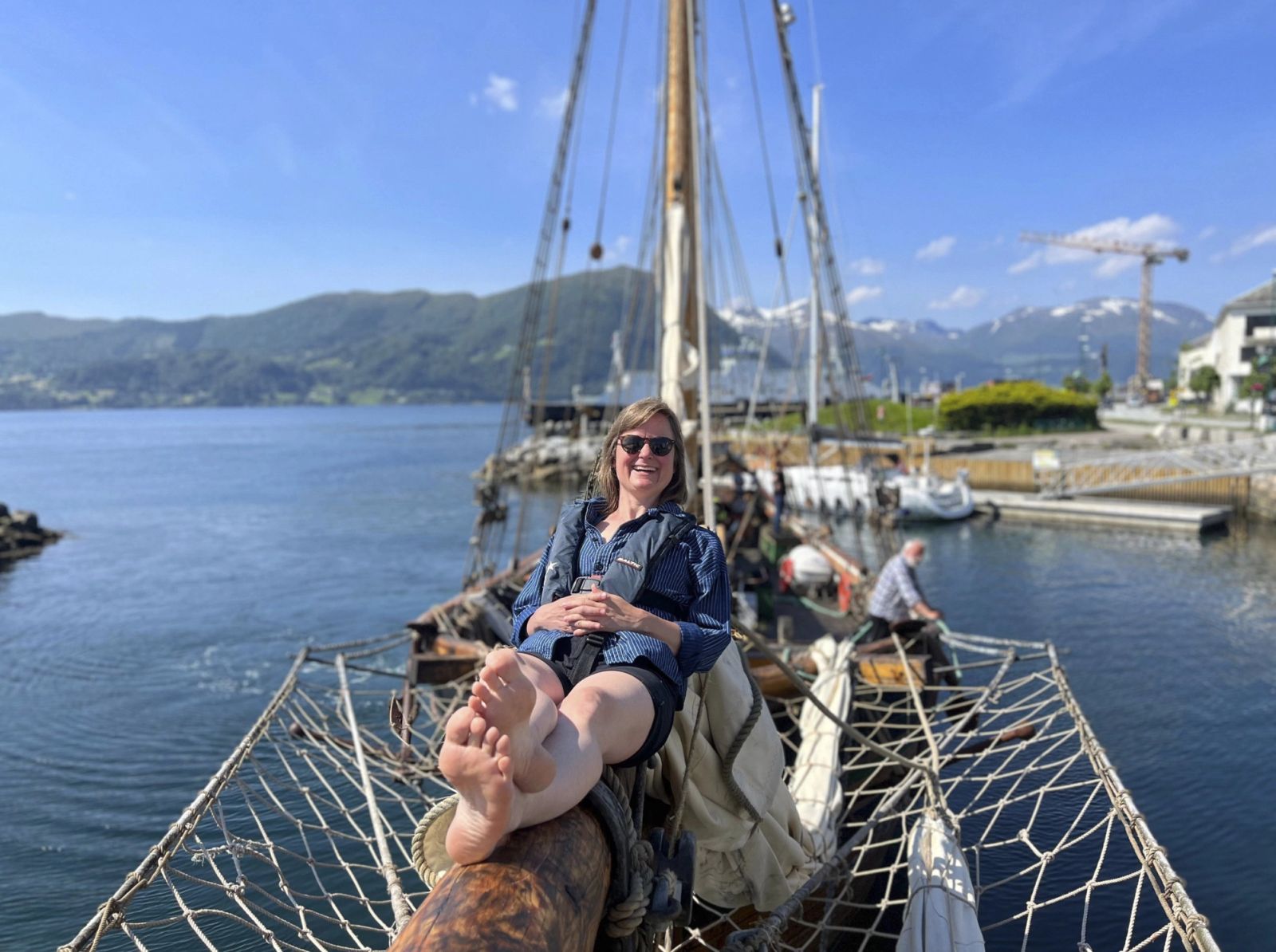 Etter ei hyggjeleg jonsokfeiring i Ålesund torsdag la sommarbåten til Klassekampen ut i retning studentbygda Volda på morgonkvisten i går. Sjølv vakna eg i åttetida av at det gynga veldig i den vesle køya mi heilt bakarst i båten. Då eg kom opp på dekk med ein kaffikopp synte det seg at vi hadde sjølvaste storhavet rett på oss frå vest, og dei store havdønningane sette store rørsler i den 76 fot lange galeasen Svanhild. Innover Vartdalsfjorden fekk vi le for både vind og bølgjer, og det klårna opp til å bli ein nydeleg sommardag og ein flott fem timars seglas inn til Volda.