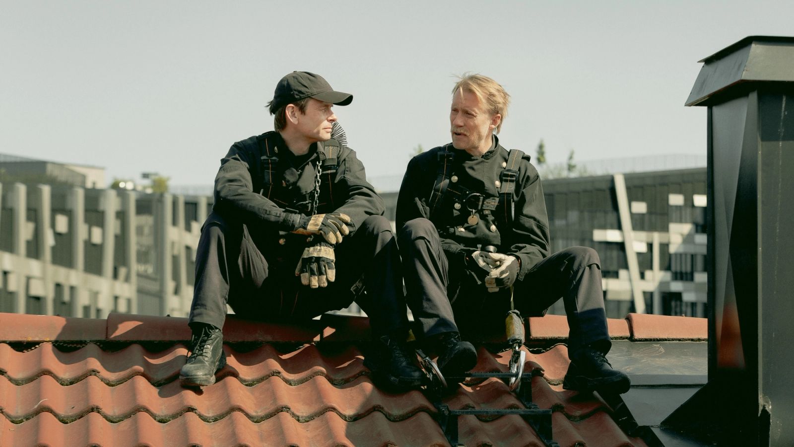 På film har sexprat blant menn sørgeleg ofte vore variantar av det Donald Trump kalla «garderobeprat» og helst brukt som oppspel til å visa sjølve akta. I Dag Johan Haugeruds siste, essayistiske spelefilm «Sex» er samtalen heilt frigjort frå handlinga og (ikkje uventa) flytta ut frå klaustrofobisk testosteronfylde garderobar, strippebarar og andre herreklubbar. Haugerud tar praten opp på Oslos tak under ein fysisk og metaforisk høg himmel. Her er arbeidsplassen til den namnlause feiaren (Jan Gunnar Røise) og arbeidsleiaren (Thorbjørn Harr): openhjartige arbeidskameratar og omsorgsfulle familiefedrar i høgst alminnelege, heterofile ekteskap.