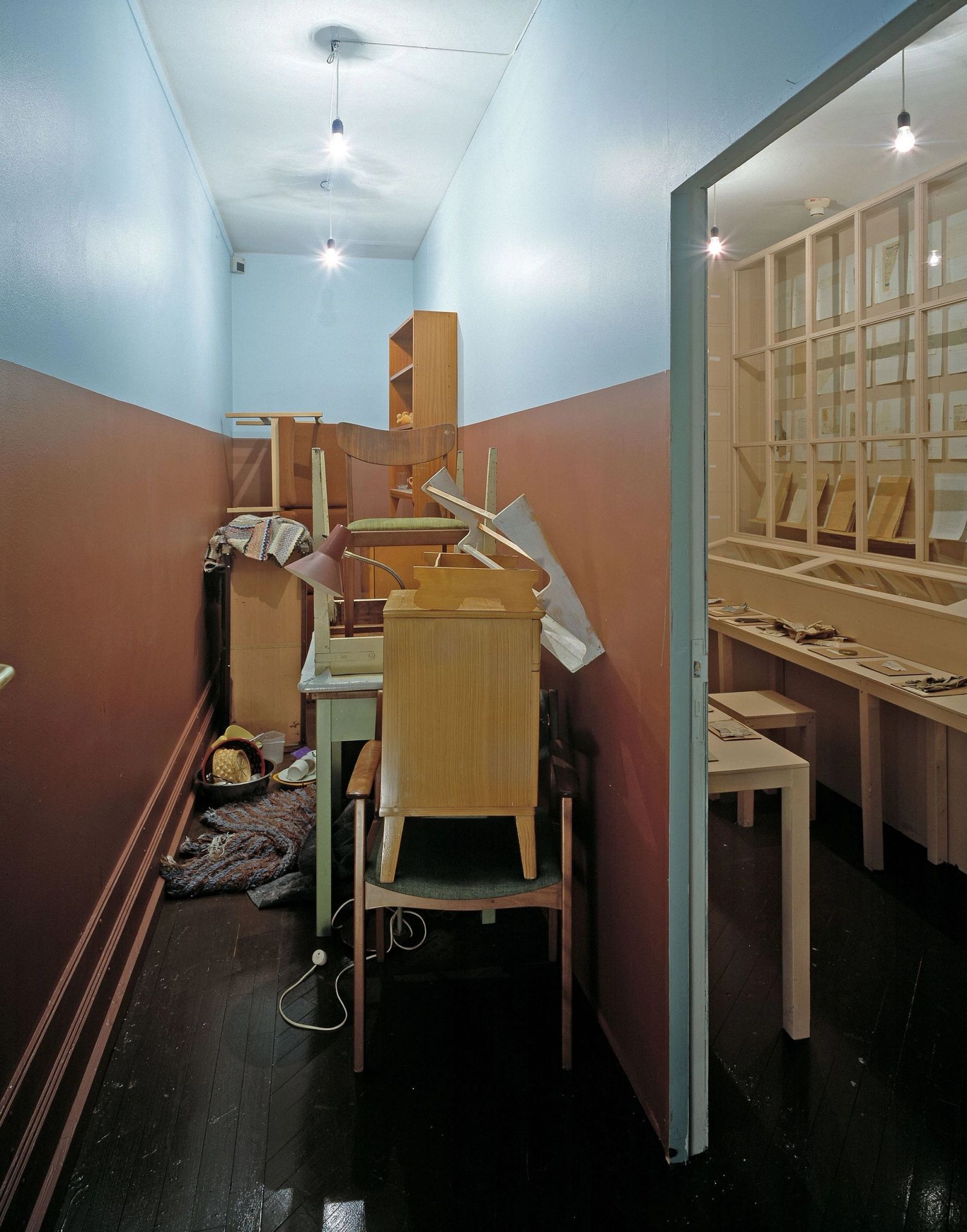 En avis brukt til å pakke inn en vannmelon. En fyrstikkeske med en tegning av en palme på. En hempe fra en lommebok som ble funnet på gaten 15. desember 1963.